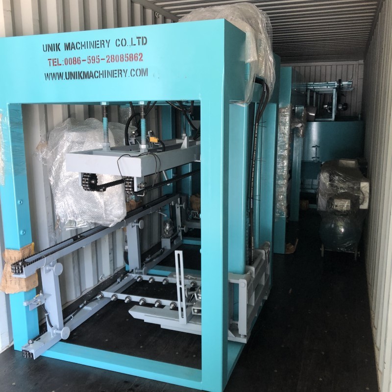 Stroj za betonske bloke UNT600 je zasnovan za višino izdelka 40–220 mm. Ogrodje stroja je sestavljeno iz varjene konstrukcije z uporabo profilnega jekla, ki zagotavlja optimalno togost in dostopnost. Krmiljenje funkcij in premikov stroja nadzira sistem Omron PLC. Vse premike, časovne funkcije, cilje pozicioniranja in parametre vibriranja je mogoče prilagoditi kot spremenljivke na enostaven in varen način prek upravljalne plošče.