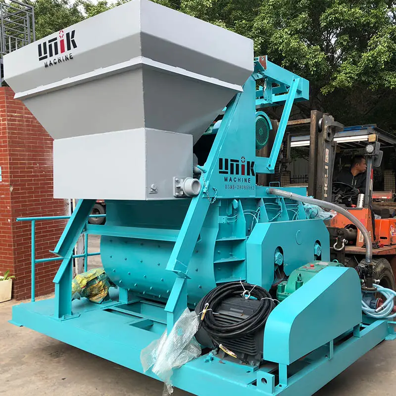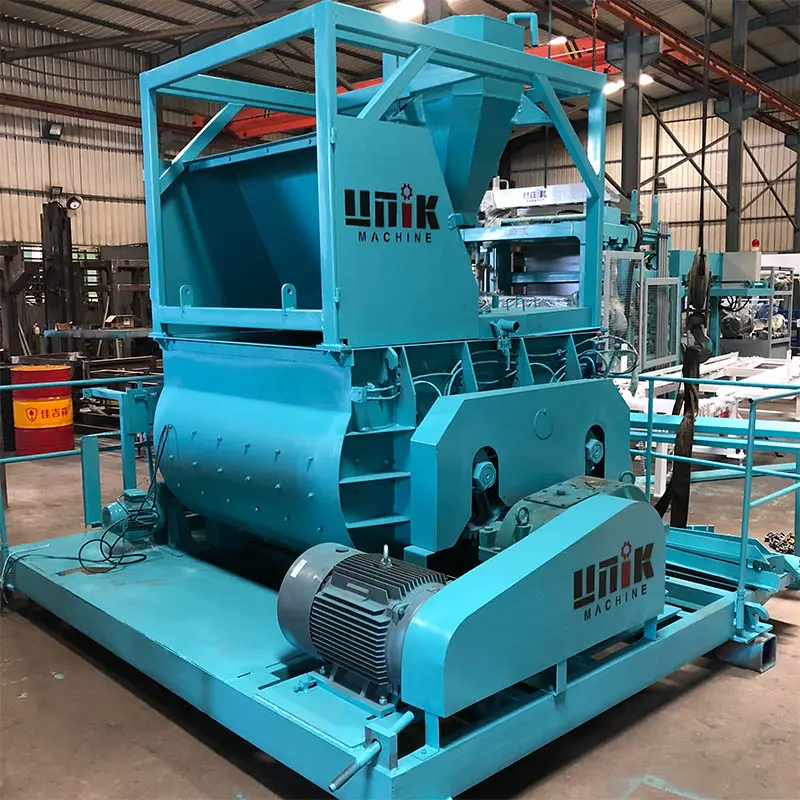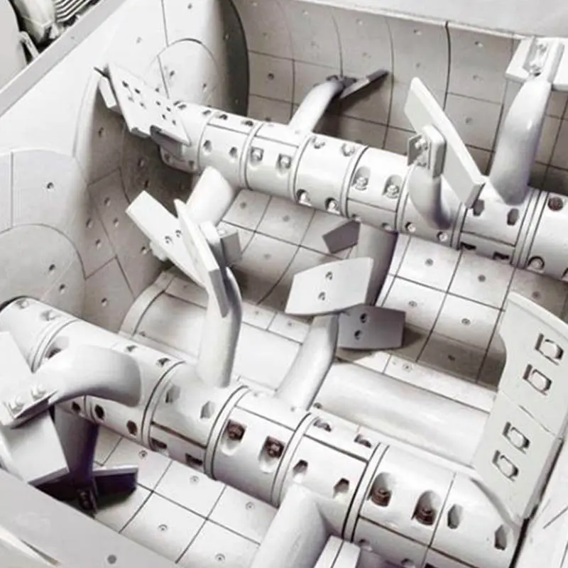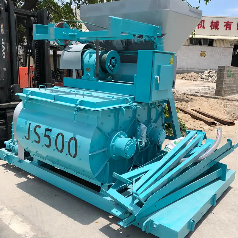 Obvezni mešalnik JS je v glavnem sestavljen iz dveh vodoravno razporejenih krožnih mešalnih bobnov v obliki utorov, dveh mešalnih gredi, ki se vrtita v nasprotnih smereh, in vrtljivega mehanizma. Na obeh gredeh je nameščenih več skupin mešalnih nožev, mešanica se izmenično meša v dveh mešalnih bobnih. Po eni strani je zmes na dnu in na sredini mešalnega bobna obrnjena navzgor, po drugi strani pa se zmes potiska naprej in nazaj vzdolž osi, tako da je mešanica narejena hitro in enakomerno.